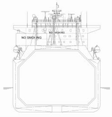 The tanks are generally Type C spheres and no secondary barrier is required. A double bottom is constructed for ballast water. The hold space around the cargo tanks does not need to be inerted.