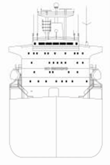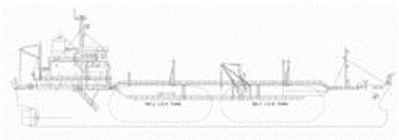 The tanks nearly extend to the full width of the ship, with ballast in the double bottom and upper hopper or wing tanks.