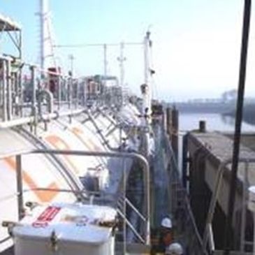 These ships carry the cargo in spherical or cylindrical steel tanks, designed for a working pressure of 17.5 kg/cm². This corresponds to the vapour pressure of propane at 45°C, which is the maximum amb